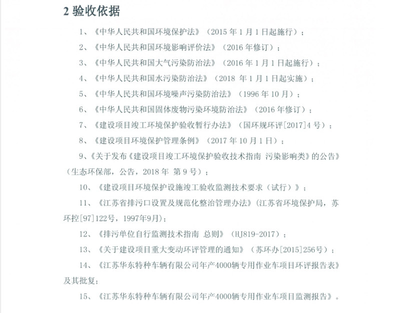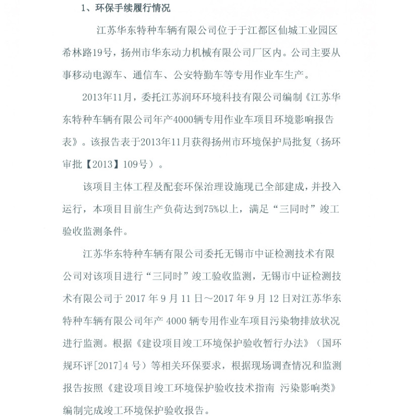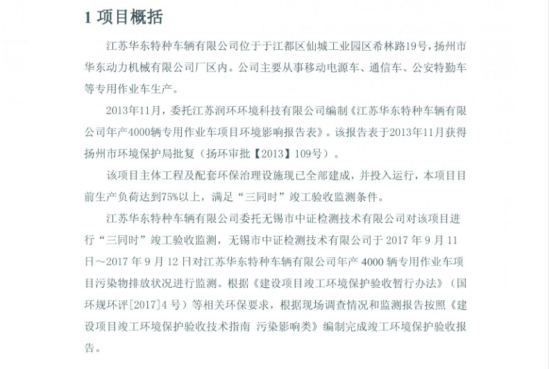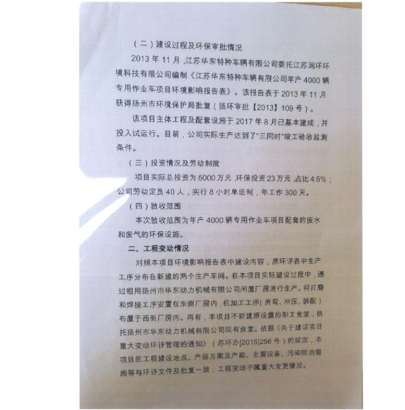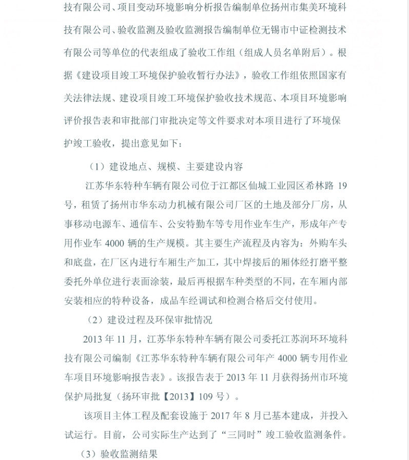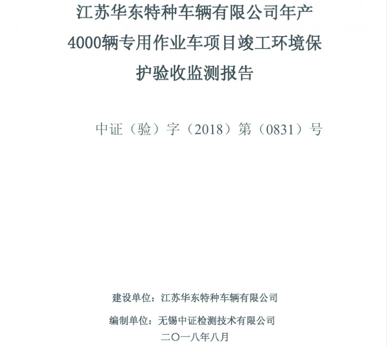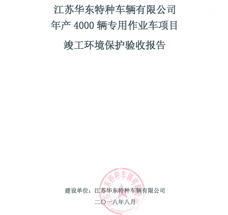 江蘇華東特種車輛有限公司年產(chǎn)4000輛專用作業(yè)車項(xiàng)目竣工環(huán)境保護(hù)驗(yàn)收報(bào)告
