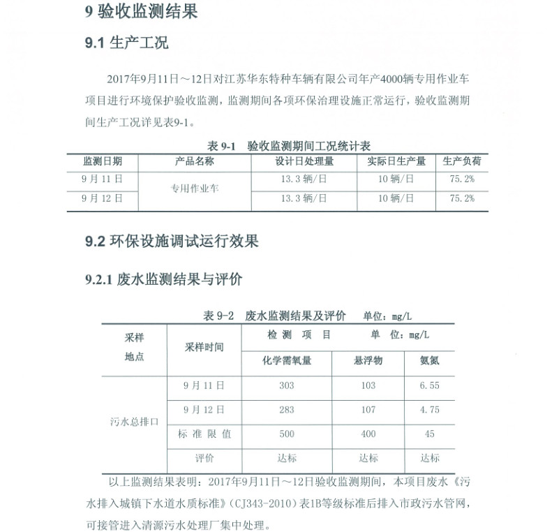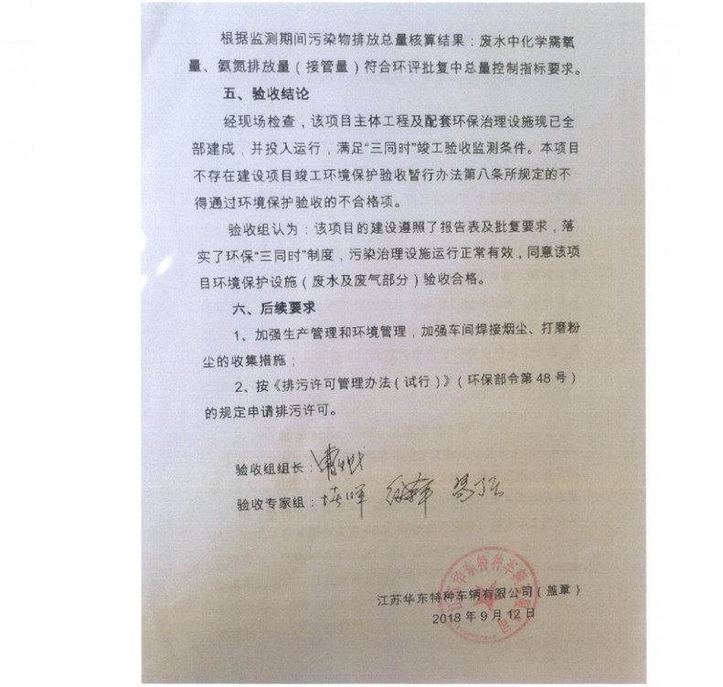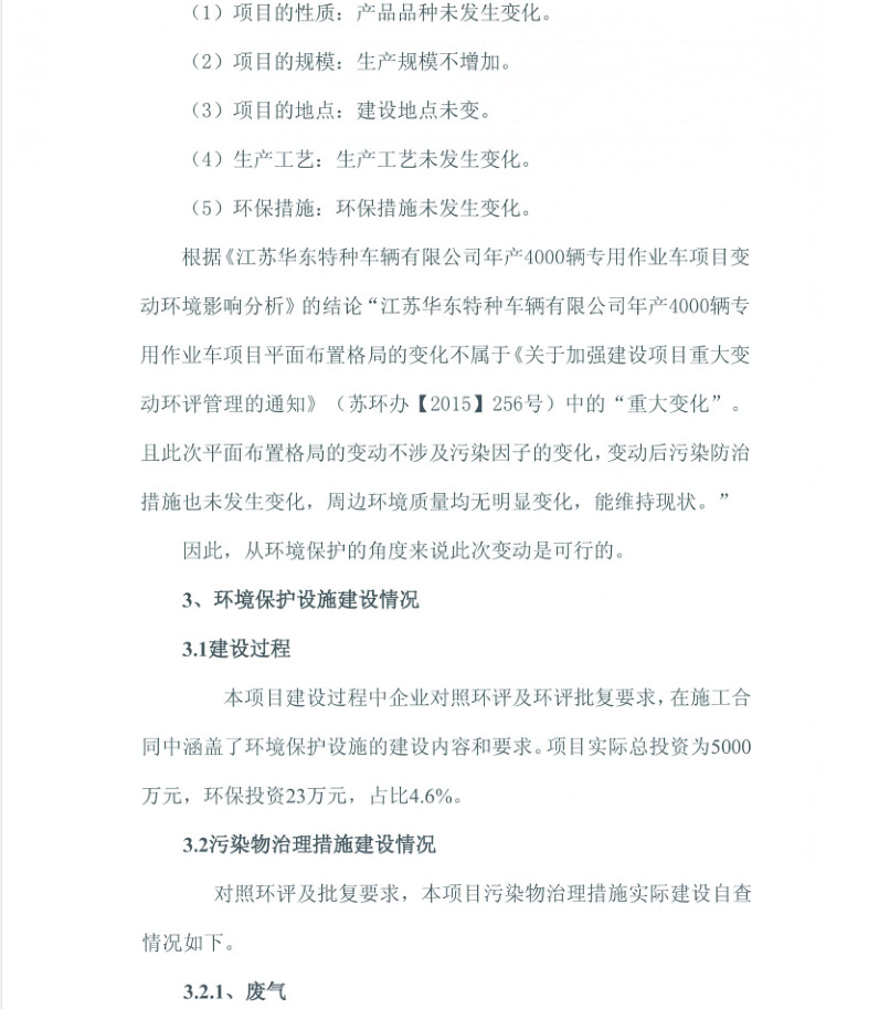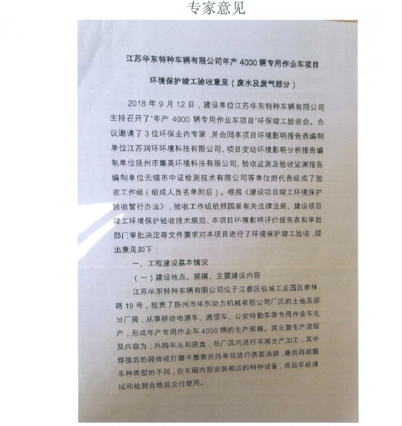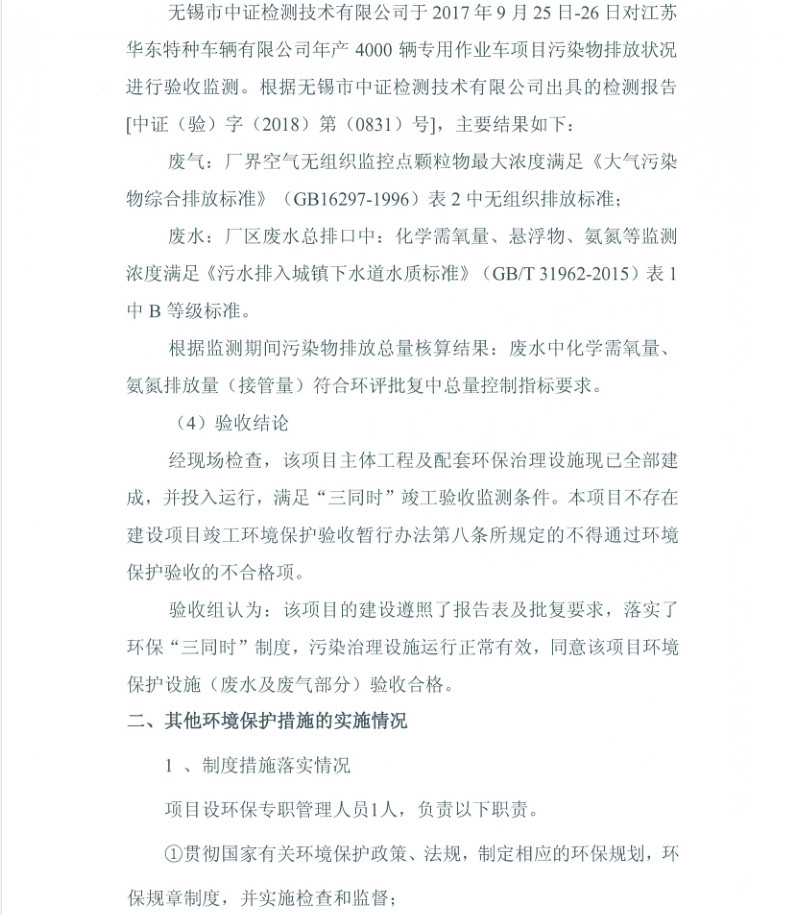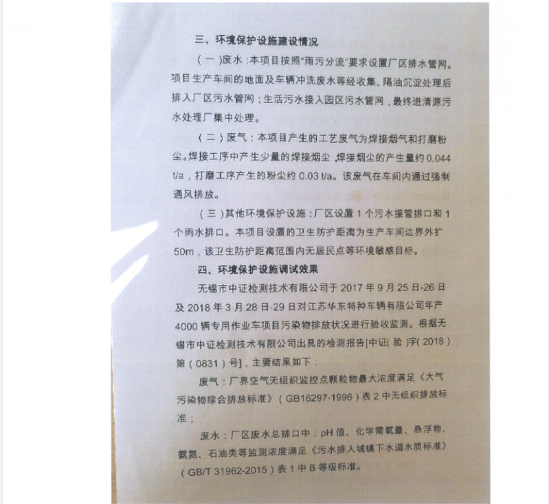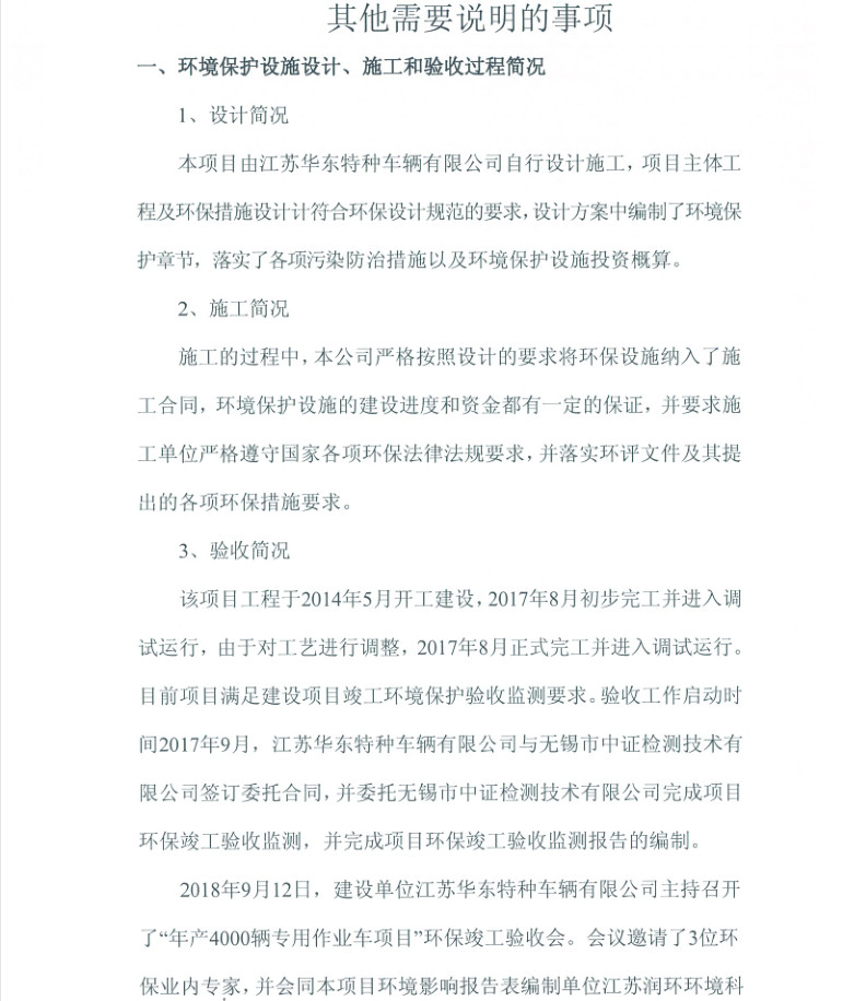 江蘇華東特種車輛有限公司年產(chǎn)4000輛專用作業(yè)車項(xiàng)目竣工環(huán)境保護(hù)驗(yàn)收報(bào)告