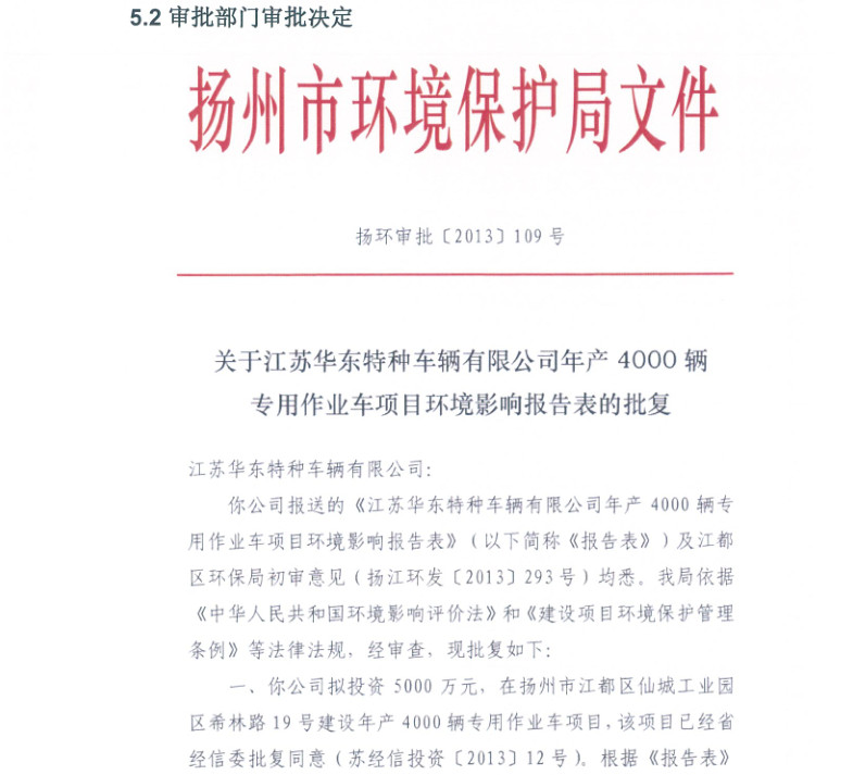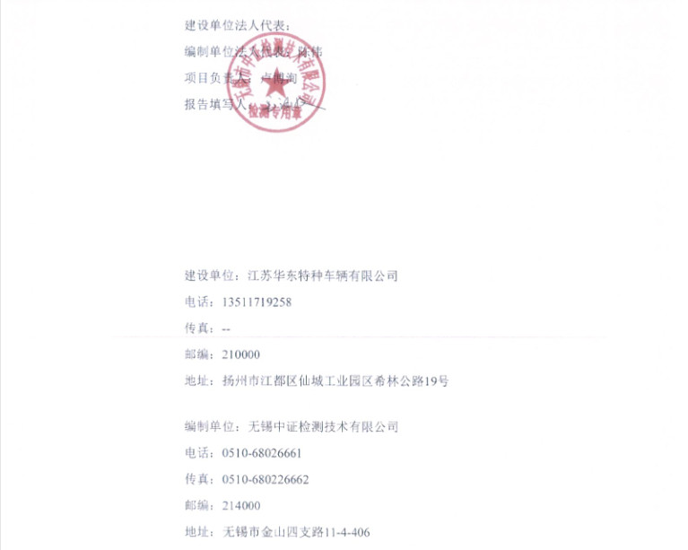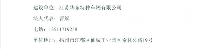 江蘇華東特種車輛有限公司年產(chǎn)4000輛專用作業(yè)車項(xiàng)目竣工環(huán)境保護(hù)驗(yàn)收報(bào)告電話 : 0514-86821471